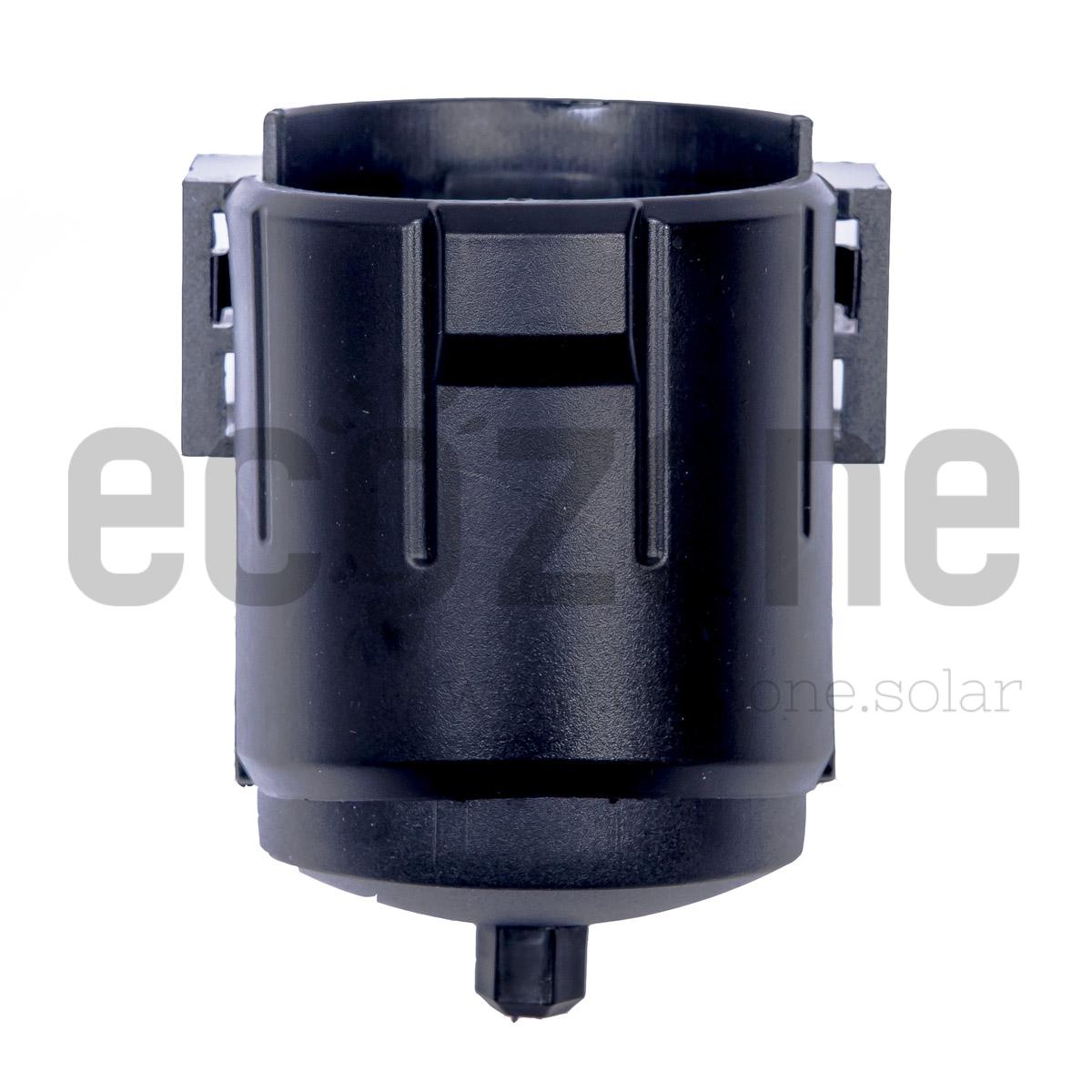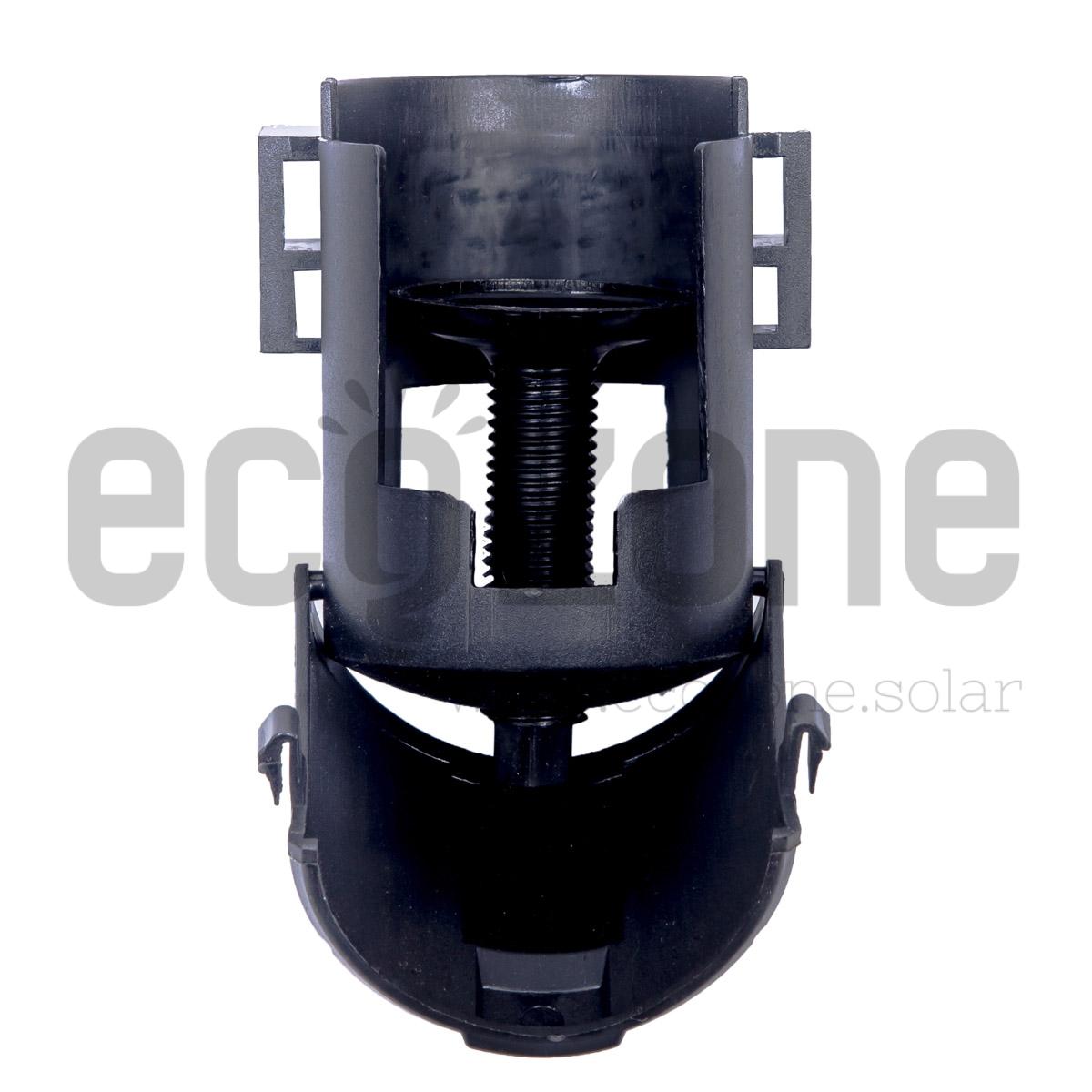 Uchwyt składa się z 2 części: – obejmy montowanej na zatrzask do stelaża kolektora – wkręcanego kapturka przytrzymującego rurę próżniową